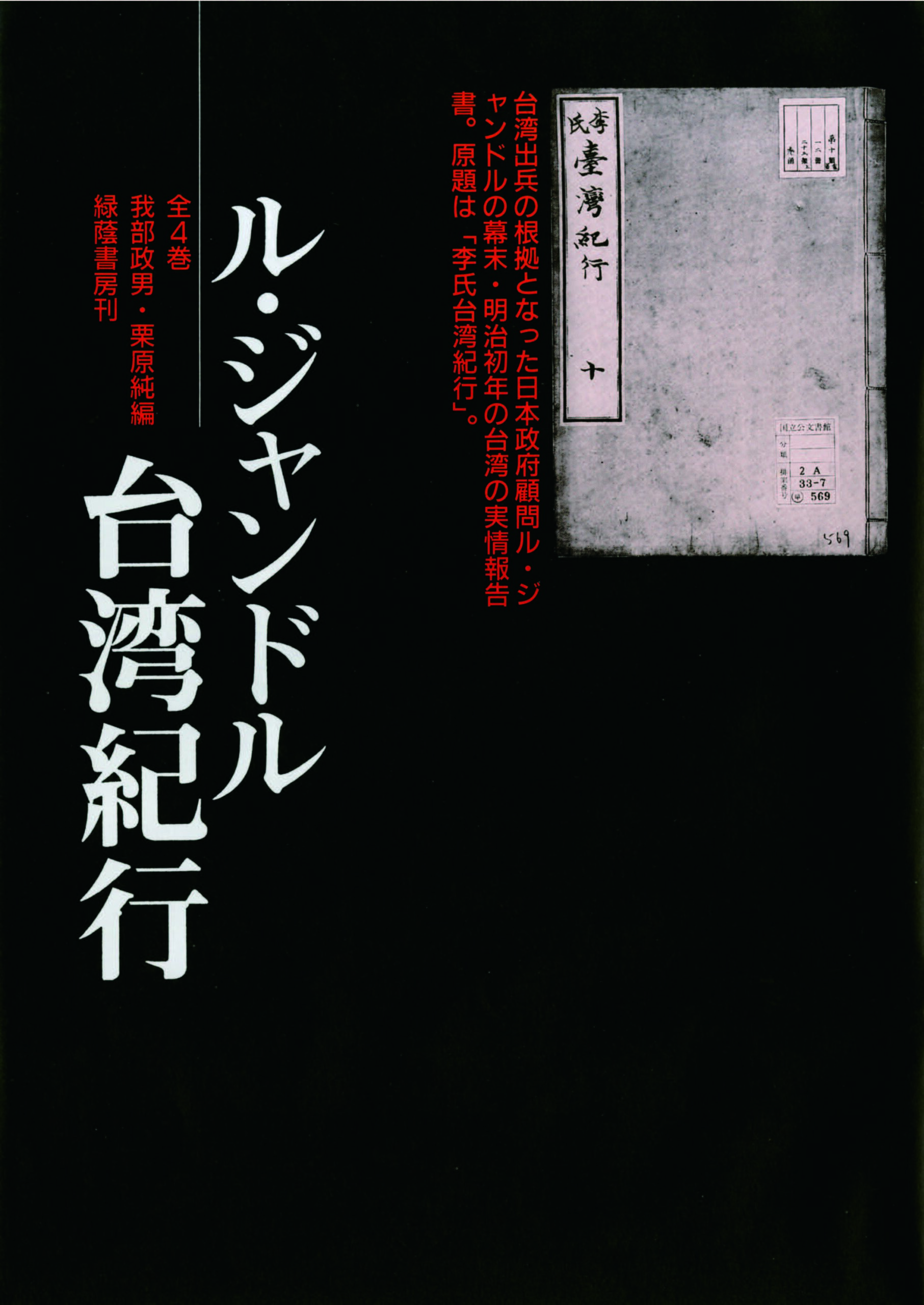 本書『ル・ジャンドル台湾紀行』(原題『李氏台湾紀行』)は、“Notes of Travel in Formosa“と題して1874(明治7)年にル・ジャンドルが書いたものを太政官正院で翻訳・編修したものである。