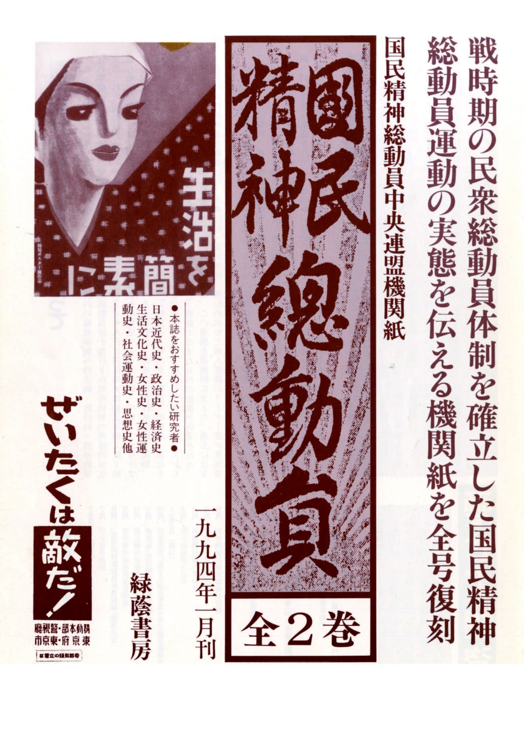 戦時期の民衆総動員体制を確立した国民精神総動員運動の実態を伝えた機関紙(全60号)を完全復刻。3年間にわたる精神の動向を記録した史料。 国民精神総動員中央聯盟編 体裁 B4判・上製クロス装