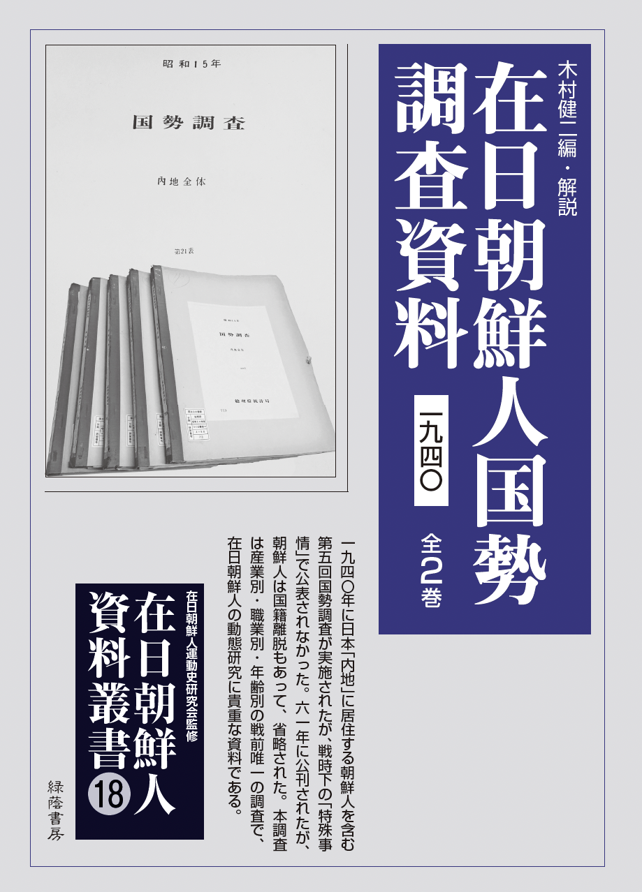 1940年の『国勢調査』(内閣統計局)のうち第21表の「内地在住ノ朝鮮人」の統計原表を収録した。太平洋戦争下を除き、戦前の在日朝鮮人の年令別、産業別、職業別人数の全国的な実態を伝える唯一の資料。 ■在日朝鮮人資料叢書18 木村健二編・解説 体裁 編集復刻版・全2巻・A5判・上製クロス装