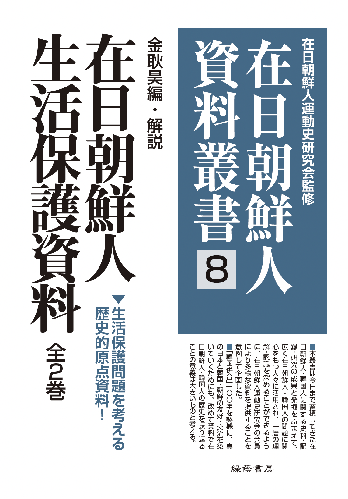 1940年代を中心に、戦後日本社会における在日朝鮮人の生活困難者層の動向(とりわけ生活保護受給者の動向)を広汎に記載した初めての資料集。生活保護問題を考える歴史的原点資料。 ■在日朝鮮人資料叢書8 金耿旱編・解説 体裁 編集復刻版・全2巻・A5判・上製クロス装