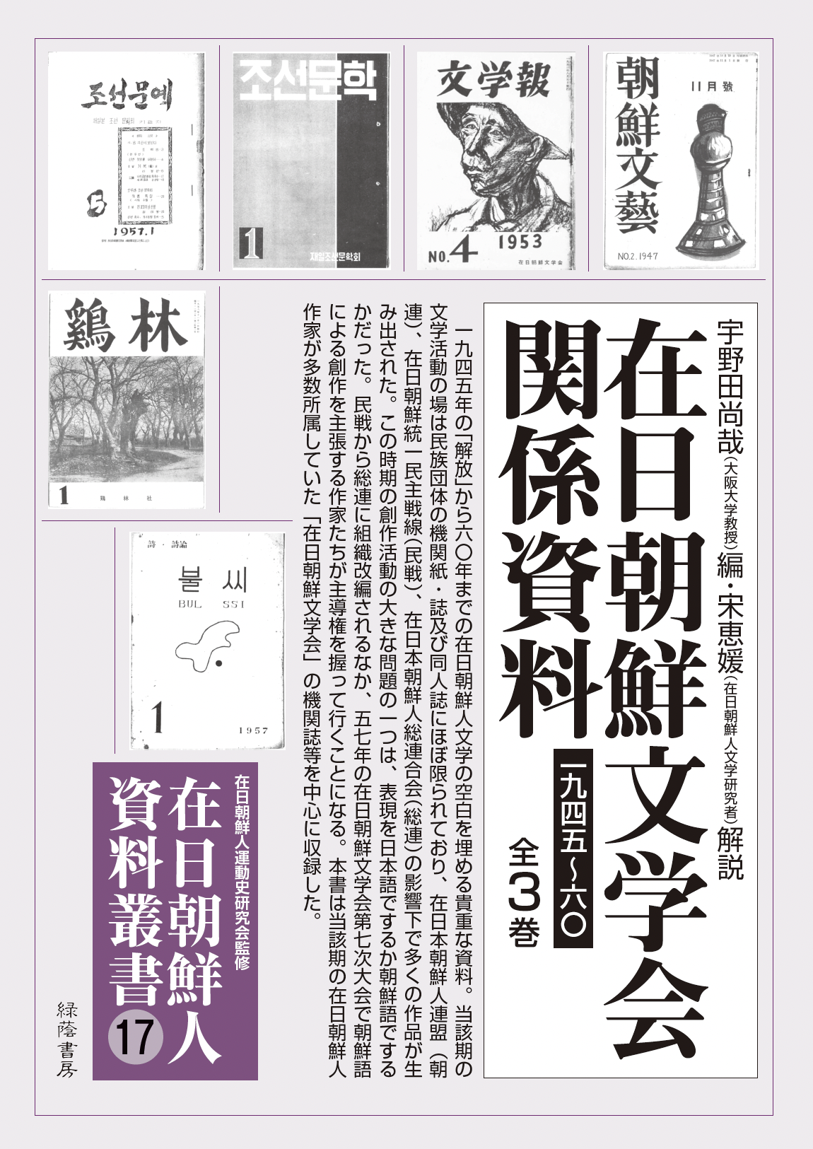 1945年の解放から1960年までの在日朝鮮人の文学的営みの問題点と作品を知る貴重な資料である。「在日朝鮮文学会」の機関誌を中心に収録した。 ■在日朝鮮人資料叢書17 宇野田尚哉編・宋恵媛解説 体裁 編集復刻版・全3巻・A5判・上製クロス装