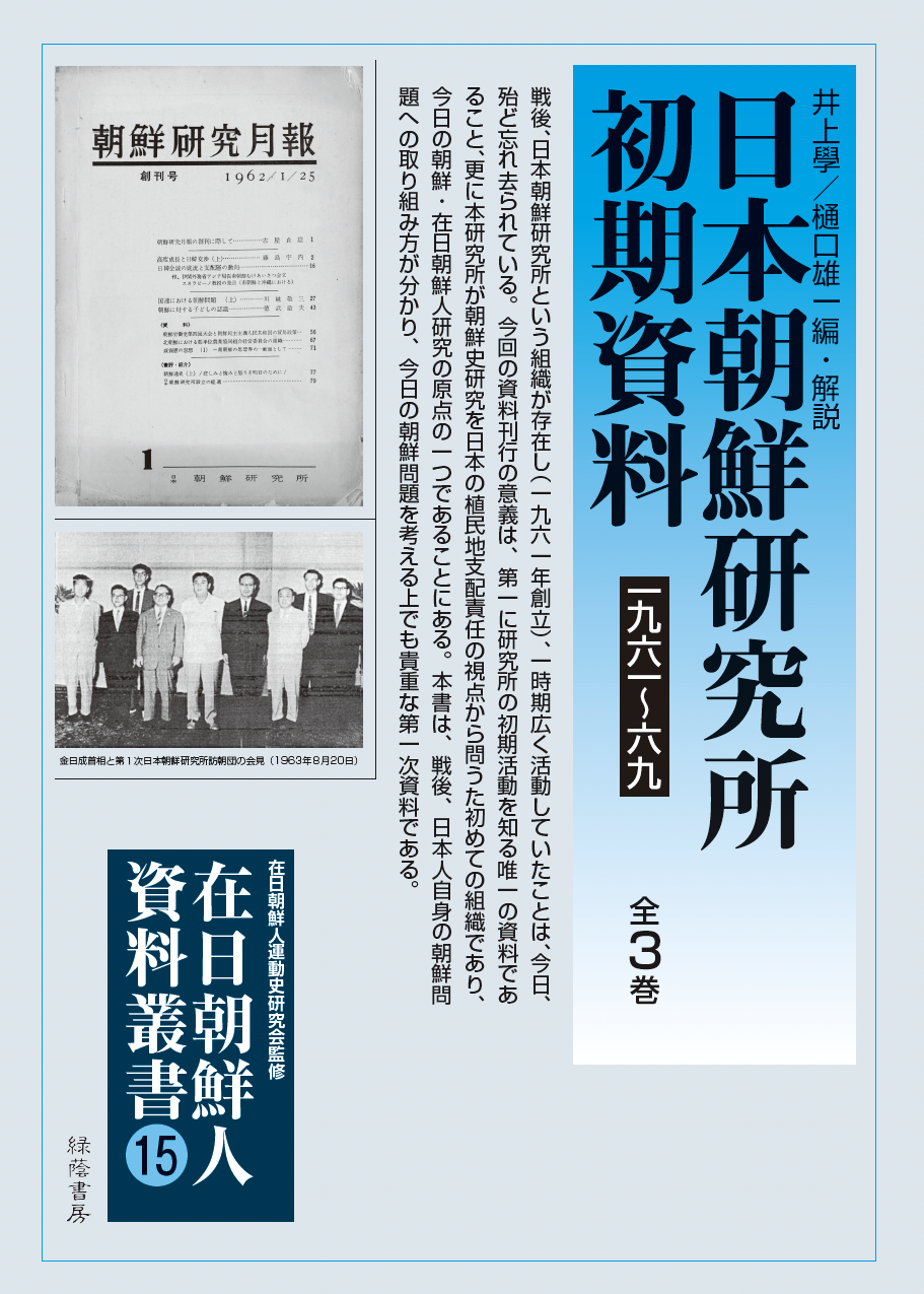 戦後日本における朝鮮近現代史研究の発展は、日本朝鮮研究所の活動が大きな力となった。戦後日本の朝鮮研究はどの様な形で新たな出発をし、どの様な課題を抱えていたのか、創設期及び初期の内部資料を収録。 ■在日朝鮮人資料叢書15 井上學・樋口雄一編 体裁 編集復刻版・全3巻・A5判・上製クロス装