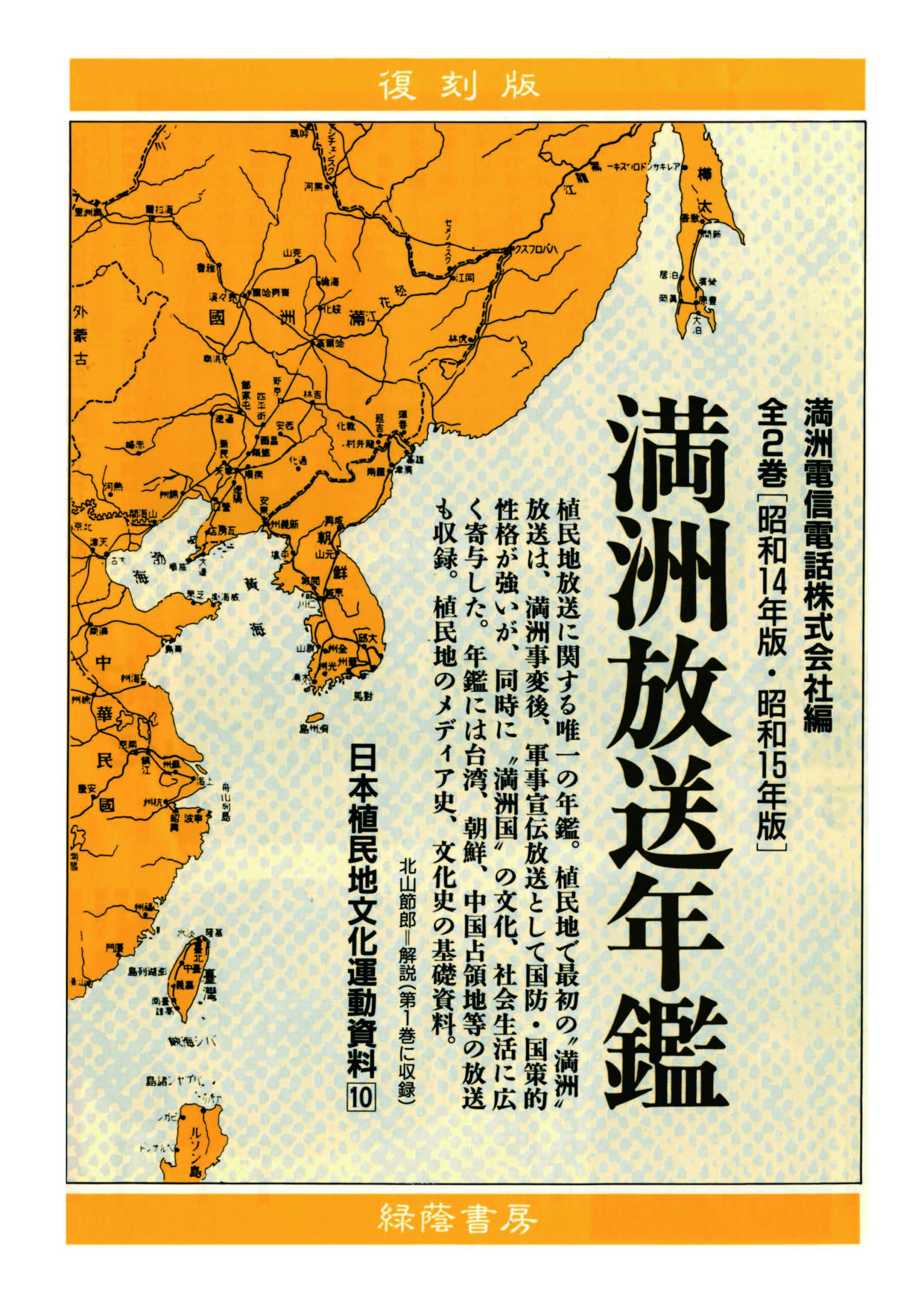 植民地放送に関する唯一の年鑑。植民地で最初の“満洲”放送は、満洲事変後、軍事宣伝放送として国防・国策的性格が強いが、同時に“満洲国”の文化、社会生活に広く寄与した。年間二は台湾、朝鮮、中国占領地等の放送も収録。植民地のメディア史、文化史の基礎資料。(解説・北山節郎) ■日本植民地文化運動資料10 満洲電信電話株式会社編[昭和14年版・昭和15年版] 体裁 復刻版・A5判・上製クロス装