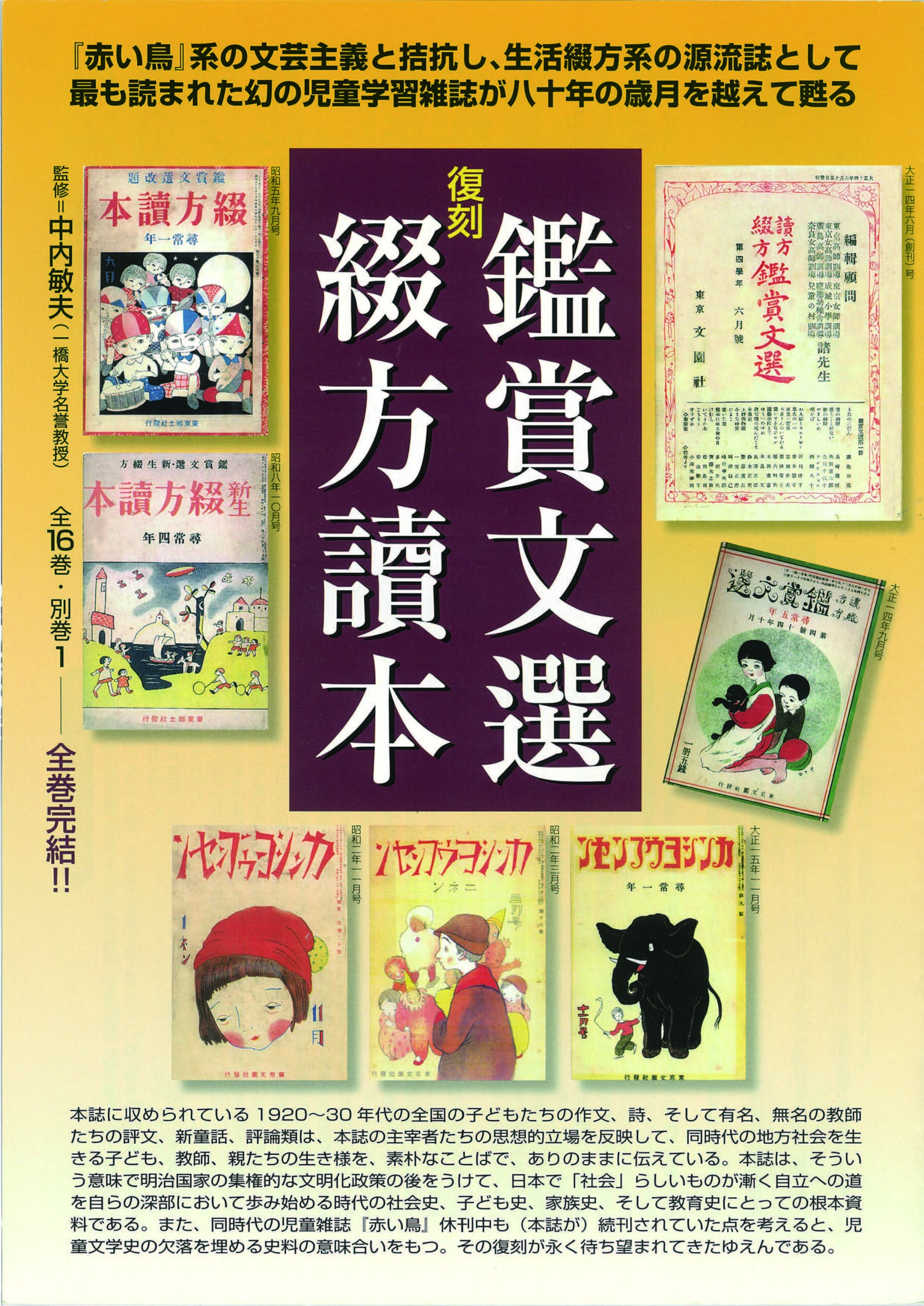 作文・綴方教育史・児童文学史の欠落部分を補う幻の雑誌の復刻。『赤い鳥』系の文芸主義と拮抗し、生活綴方系の源流誌として、最も読まれた児童文学誌が百年の歳月を超えて甦る。